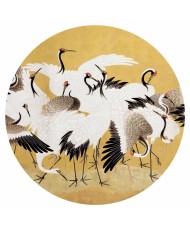 Apvalūs fototapetai - Japoniškos gervės aukso fone