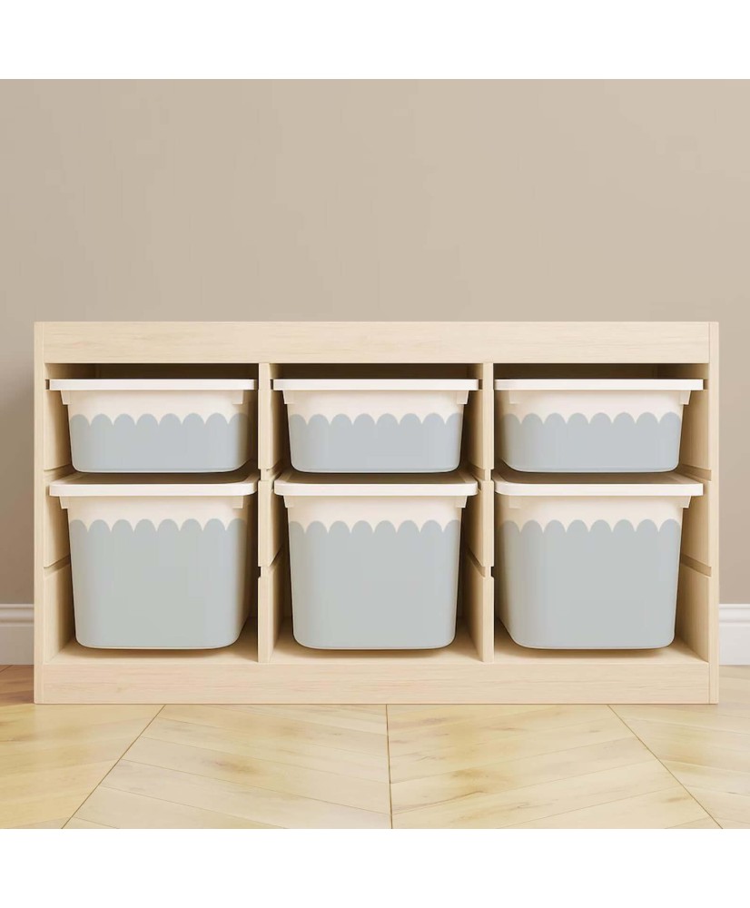Stilingi lipdukai IKEA TROFAST dėžėms su banguotu krašteliu. Pagaminti iš aukštos kokybės vinilo, lengvai klijuojami, patvarūs ir pritaikomi prie įvairių interjerų.
