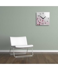 Šis kvadratinis sieninis laikrodis tapo mūsų įkvėpimu. Šviesiai rožiniai žiedlapiai sniego baltumo fone puikiai tiks moderniuose ir erdviuose kambariuose.