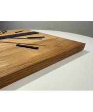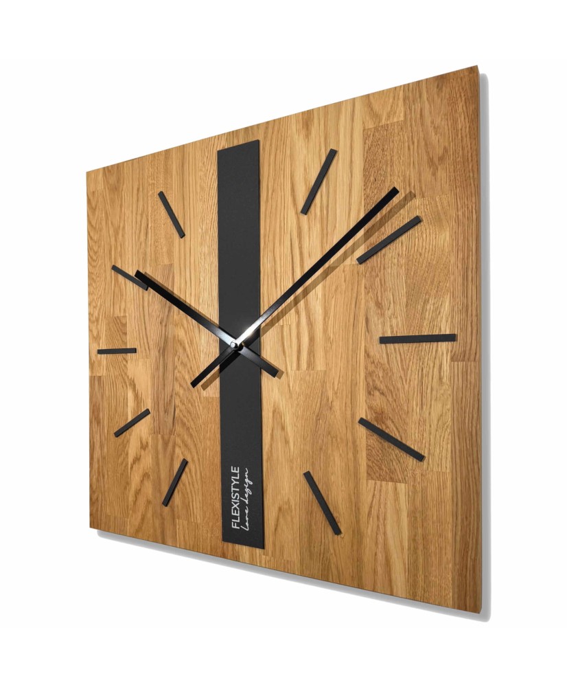 Ąžuolinė klasika 50 cm – tai didelio formato sieninis laikrodis iš natūralaus ąžuolo, papildytas juodais akcentais. Kvadratinė forma, aiškios linijos ir kontrastingas juodos bei medžio derinys suteikia laikrodžiui solidumo ir paverčia jį ryškiu interjero akcentu.