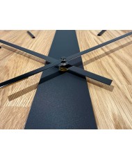 Juodi dekoratyviniai elementai ir rodyklės suteikia laikrodžiui kontrasto ir vizualinio svorio, tačiau neperkrauna bendro vaizdo. Šis spalvų derinys atrodo tvirtai, elegantiškai ir lengvai pritaikomas tiek moderniuose, tiek industriniuose ar minimalistiniuose interjeruose.