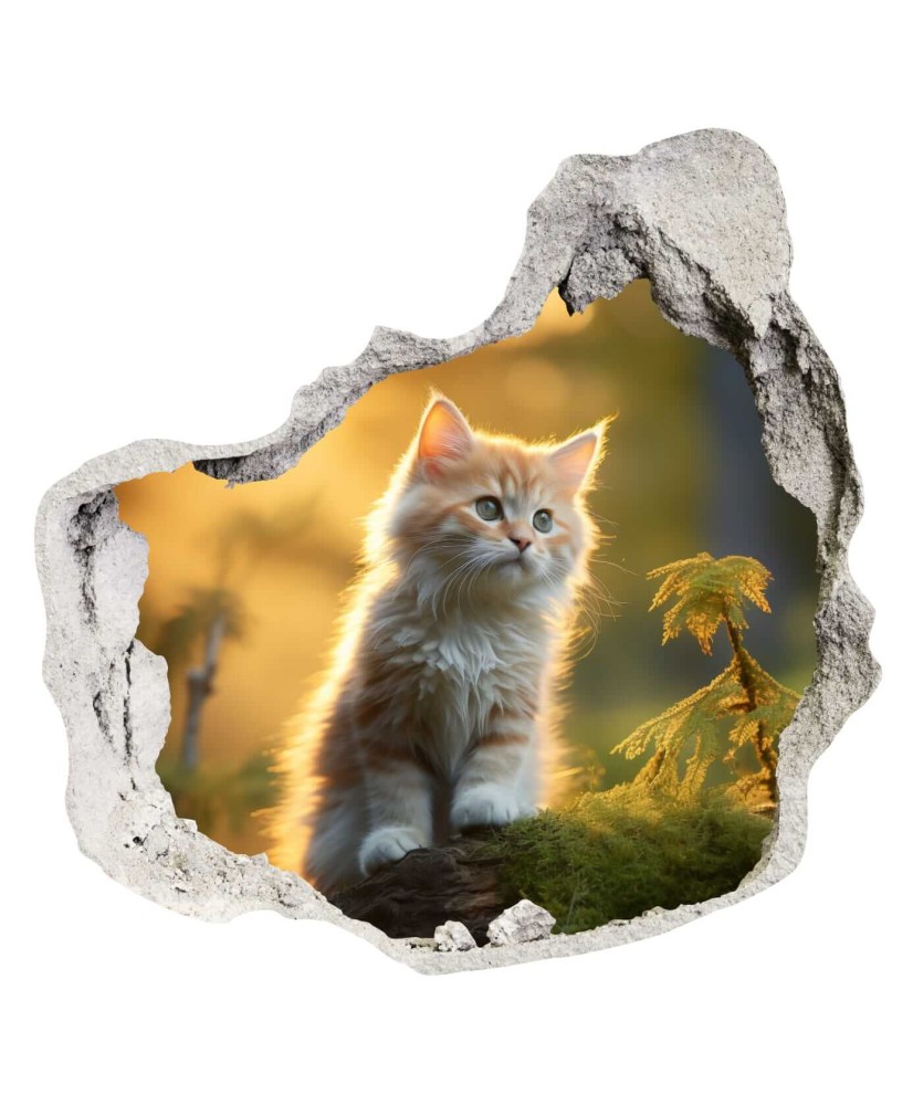 3D sienų lipdukas Kačiukas – šiltas ir žaismingas dekoras, suteikiantis sienai erdvės, šviesos ir jaukumo.