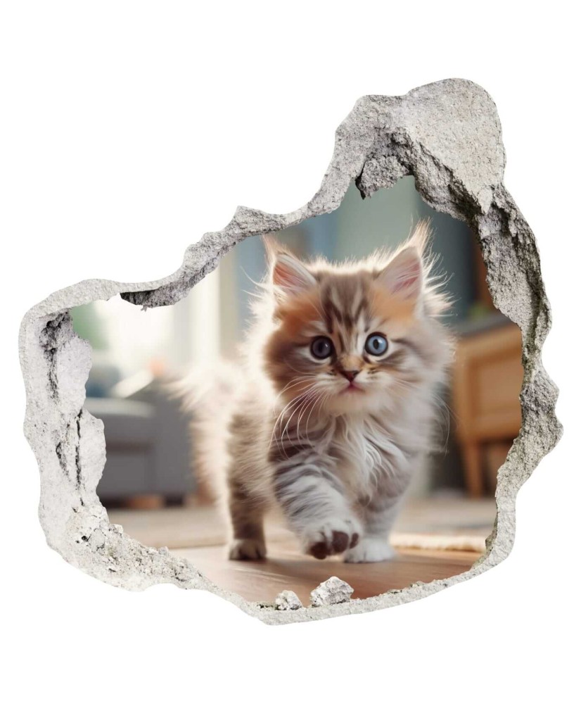 3D sienų lipdukas Kačiukas – šiltas ir žaismingas dekoras, suteikiantis sienai erdvės, šviesos ir jaukumo.