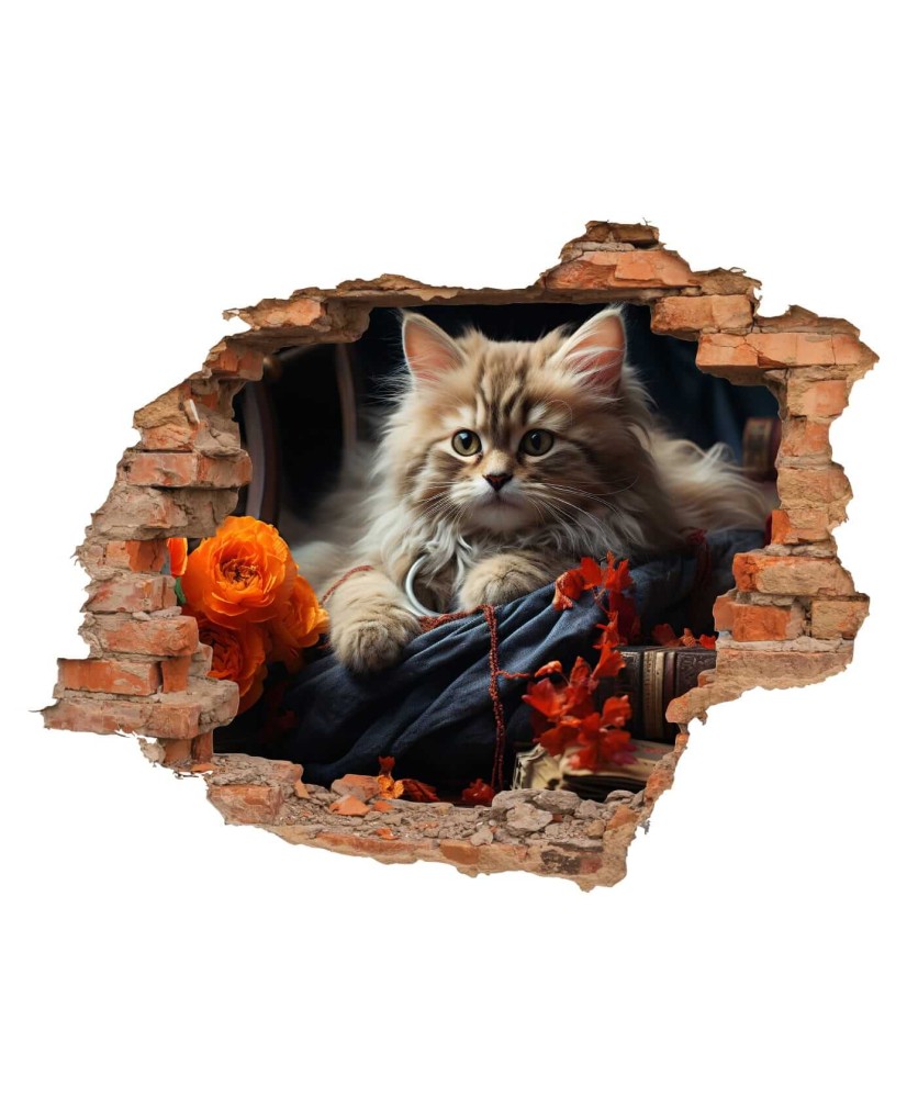 3D sienų lipdukas Kačiukas – šiltas ir žaismingas dekoras, suteikiantis sienai erdvės, šviesos ir jaukumo.